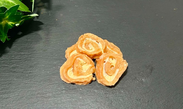 野菜本来の美味しさを閉じ込めました♩ とっても身体にいいおやつとなっていて、ダイエット中の犬ちゃんやベジタリアンな子にもオススメです☺︎ 【原材料】 レンコン、オクラ、人参、さつま芋、南瓜 【内容量】 40g 【成分表】 エネルギー426kcal /100g 粗タンパク質5%以上 粗脂肪15%以上 粗繊維10%以下 粗灰分7%以下 水分10%以下 【賞味期限】 5ヶ月以上