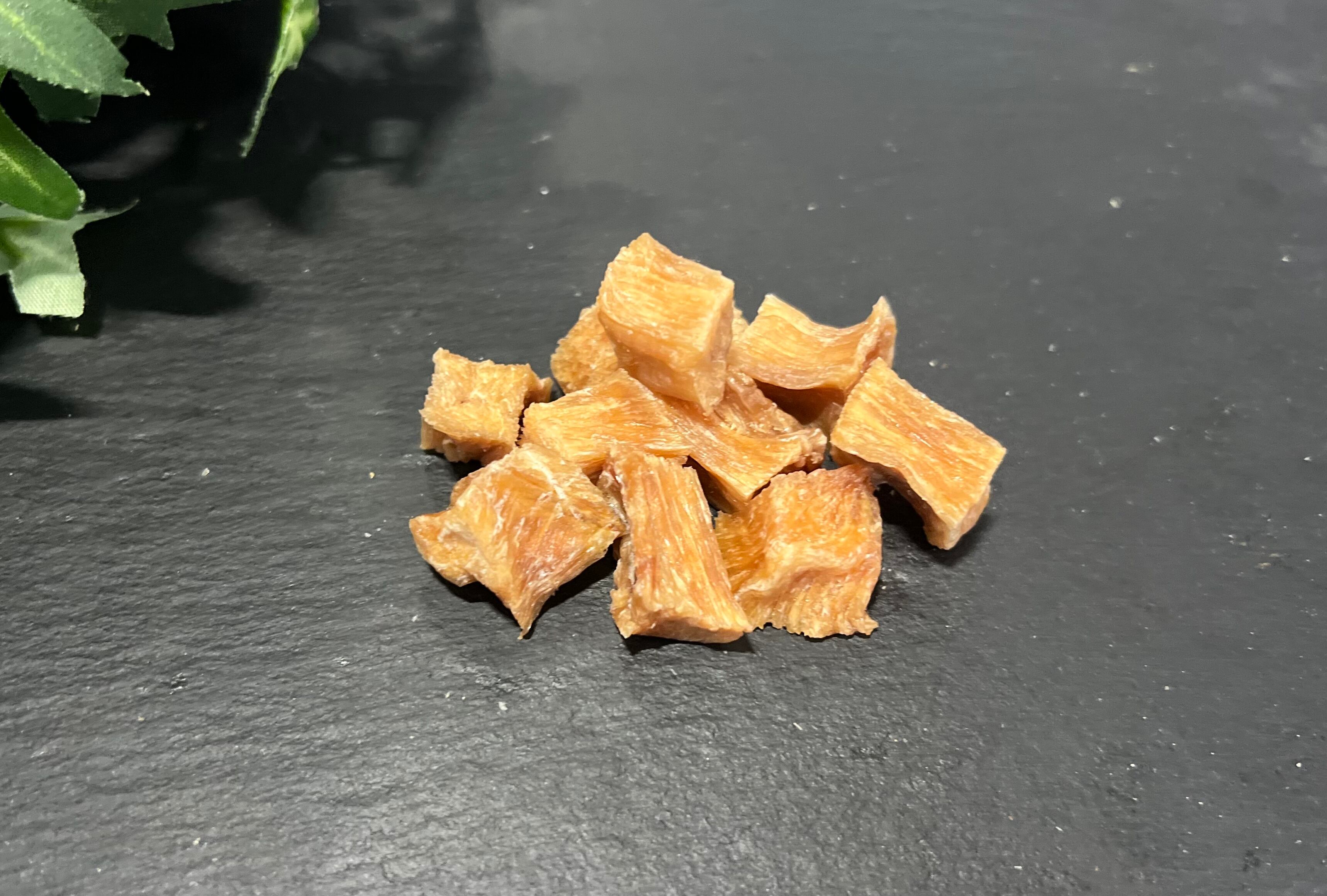 ささみをダイスカットし、長時間乾燥させた躾などのご褒美に与えやすい1口おやつです♩