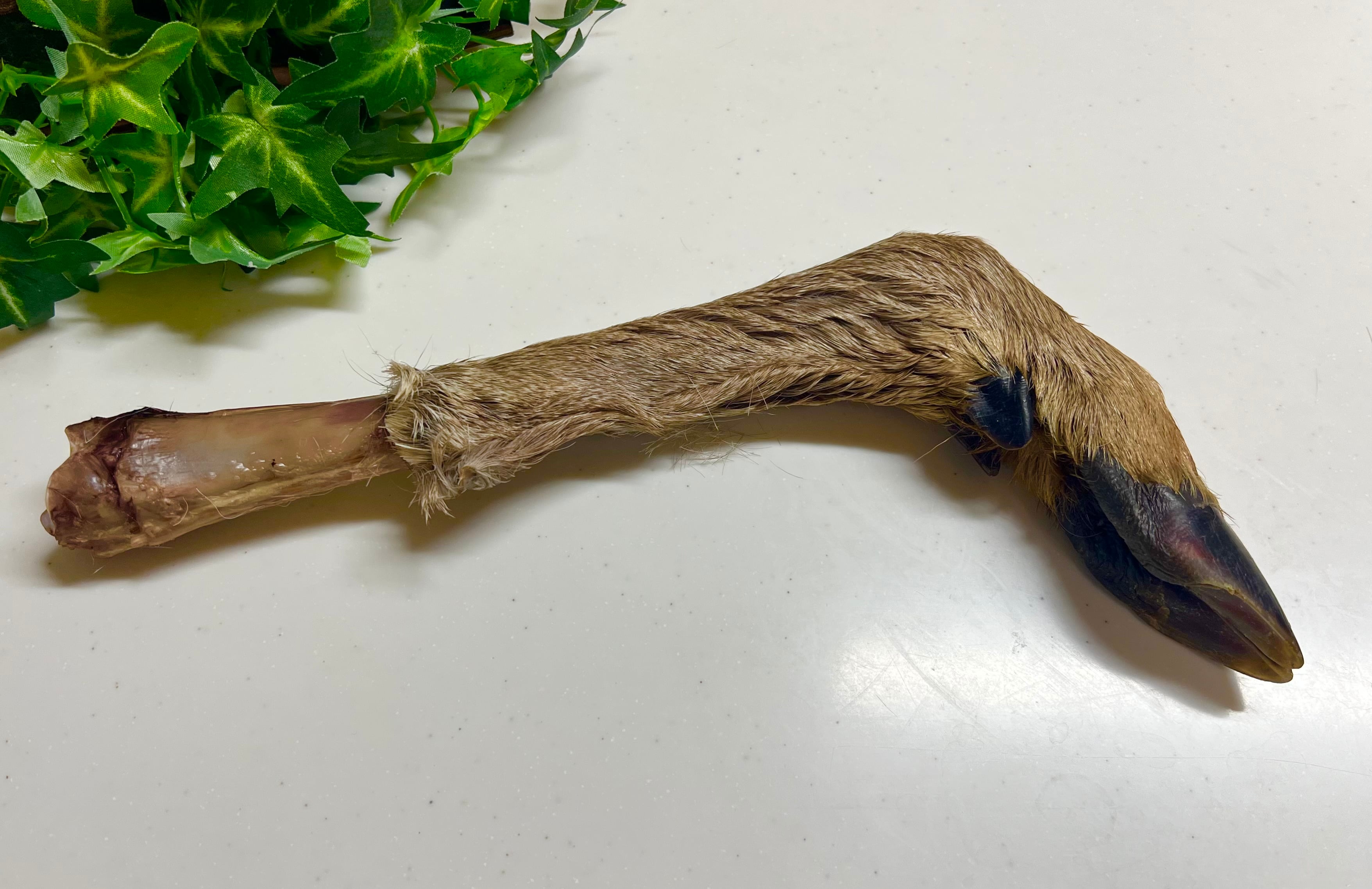 鹿毛付きごと与える事で、毛が消化器官をお掃除し悪いものも毛と一緒に排出してくれます!